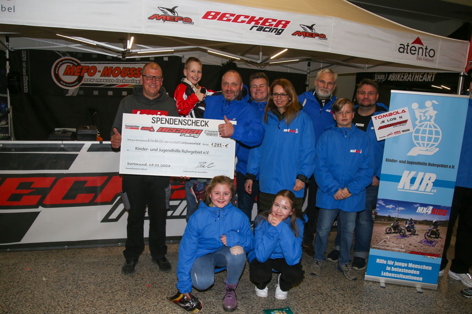 In der Pause veranstalte das Team mit Hilfe der Sponsoren eine Tombola zu Gunsten der Kinderund Jugendhilfe Ruhrgebiet e.V.. Nach reichlich Zuspruch der Zuschauer kamen am Ende ganze 1 .283 Euro zusammen und am Sonntag übergab Teamchef Thomas Becker den Check an die Kinder- und Jugendhilfe Ruhrgebiet e.V..