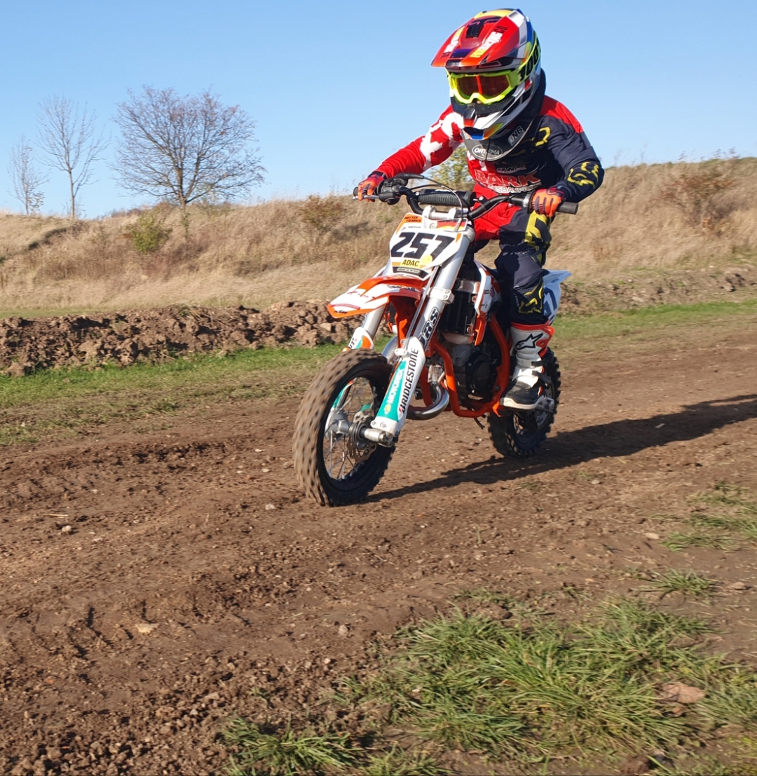 Matteos erste Fahrversuche wurden Zuhause im heimischen Garten unternommen, was auch erstaunlich gut funktionierte. Im selben Jahr wurde dann auch schon der Wechsel auf die KTM 50 SX Mini vollzogen!