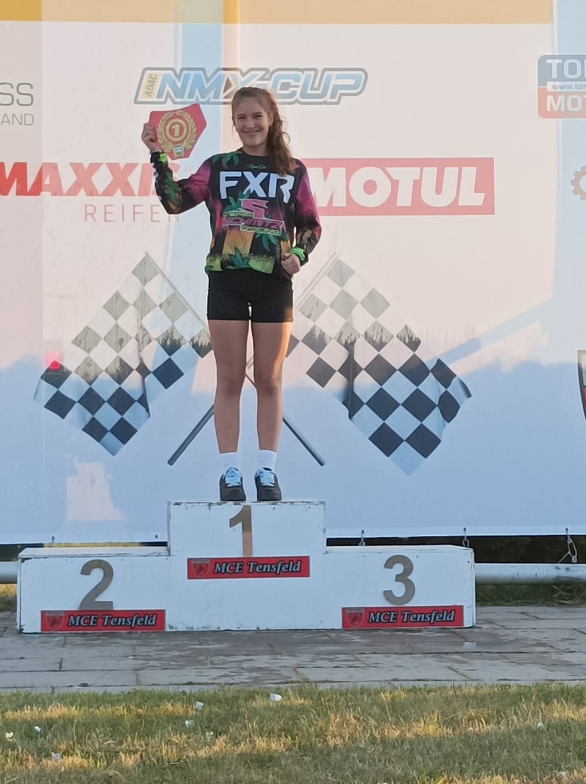 Zur Mitte der Saison zeigte sich eine deutliche Verbesserung in ihrer Leistung, was sich auch in den Ergebnissen widerspiegelte. Am Ende konnte sie sich den Titel in der SHFM Meisterschaft sichern und erreichte zudem einen beeindruckenden zweiten Platz im ADAC NMX-Cup. Diese Erfolge sind für uns eine große Freude und bestätigen, dass sich all die Mühe gelohnt hat.