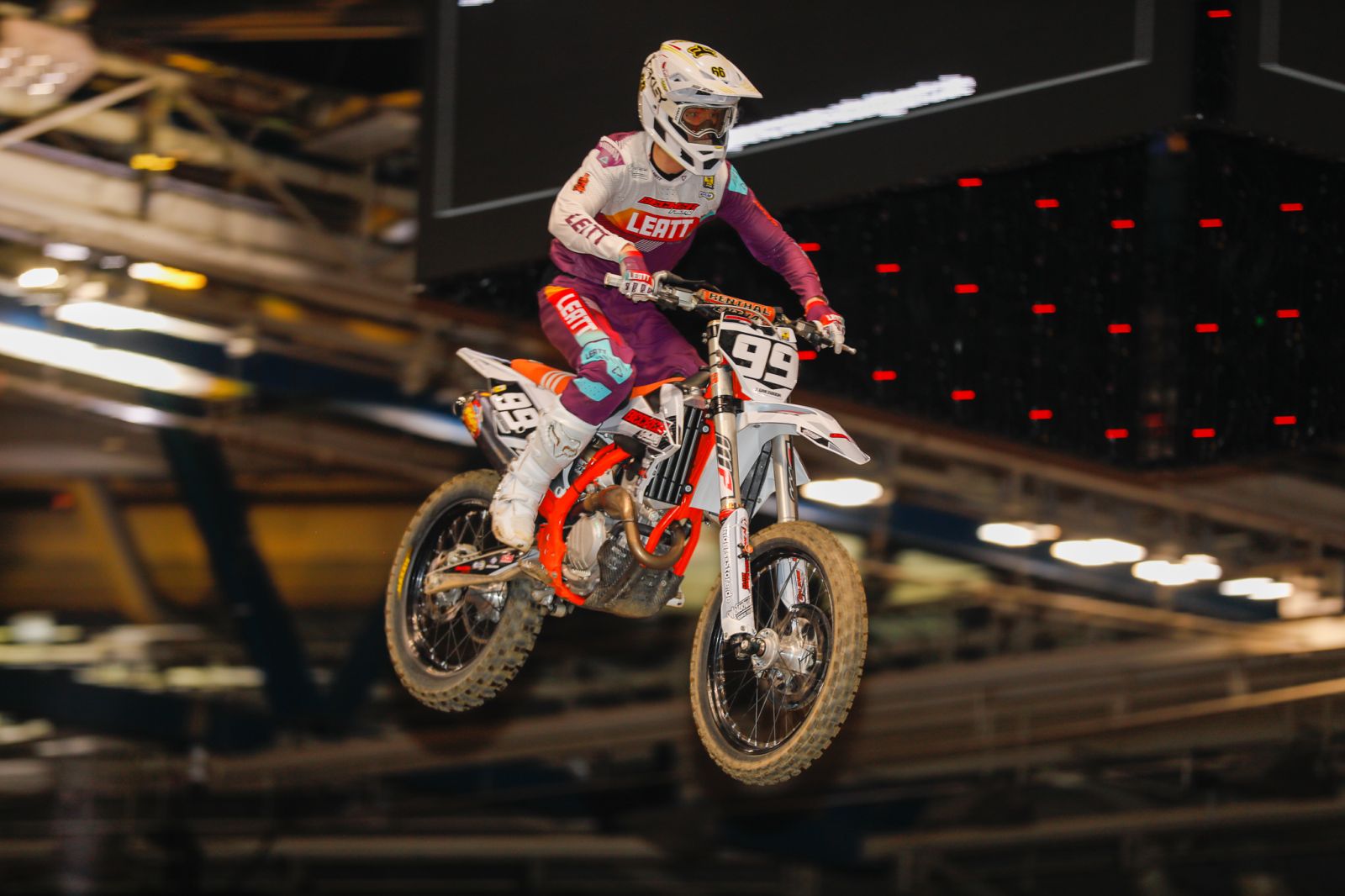 Auch Mathias konnte sich in der SX1 Klasse für das Abendprogramm qualifizieren und sein Können vor der ausverkauften Halle beweisen. Im Qualifikationsrennen zeigte er eine solide Leistung, verpasste aber mit Platz 9 die Qualifikationsplätze. Als Neuerung in dieser Saison gibt es in der SX 1 Klasse zwei kurze Hoffnungsläufe à drei Runden. In diesen schlug sich Mathias wacker und zeigte speziell im zweiten Lauf mit Platz 6 eine gute Leistung. Da sich nur die ersten beiden Fahrer für das Finale qualifizierten, reichte es leider trotzdem nicht für das Hauptrennen.