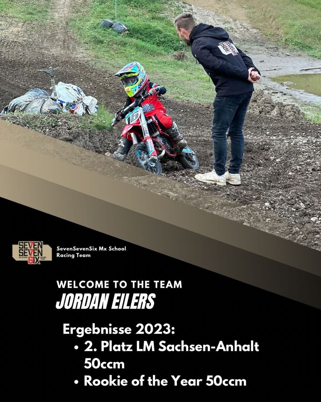 In der kommenden Saison wird Jordan auch ein Teil des SevenSevenSix Mx Racing Teams sein. Er hat sich vorgenommen Landesmeister Sachsen-Anhalt zu werden und als Gaststarter in anderen Landesmeisterschaften ans Gatter zu gehen um noch mehr Erfahrungen zu sammeln. Sein Wunsch ist es auch mit einer MC-E 5 von GASGAS am MXE Junior Cup teilzunehmen und im nächsten Jahr beim Bundesendlauf unter die Top 10 zu fahren.
