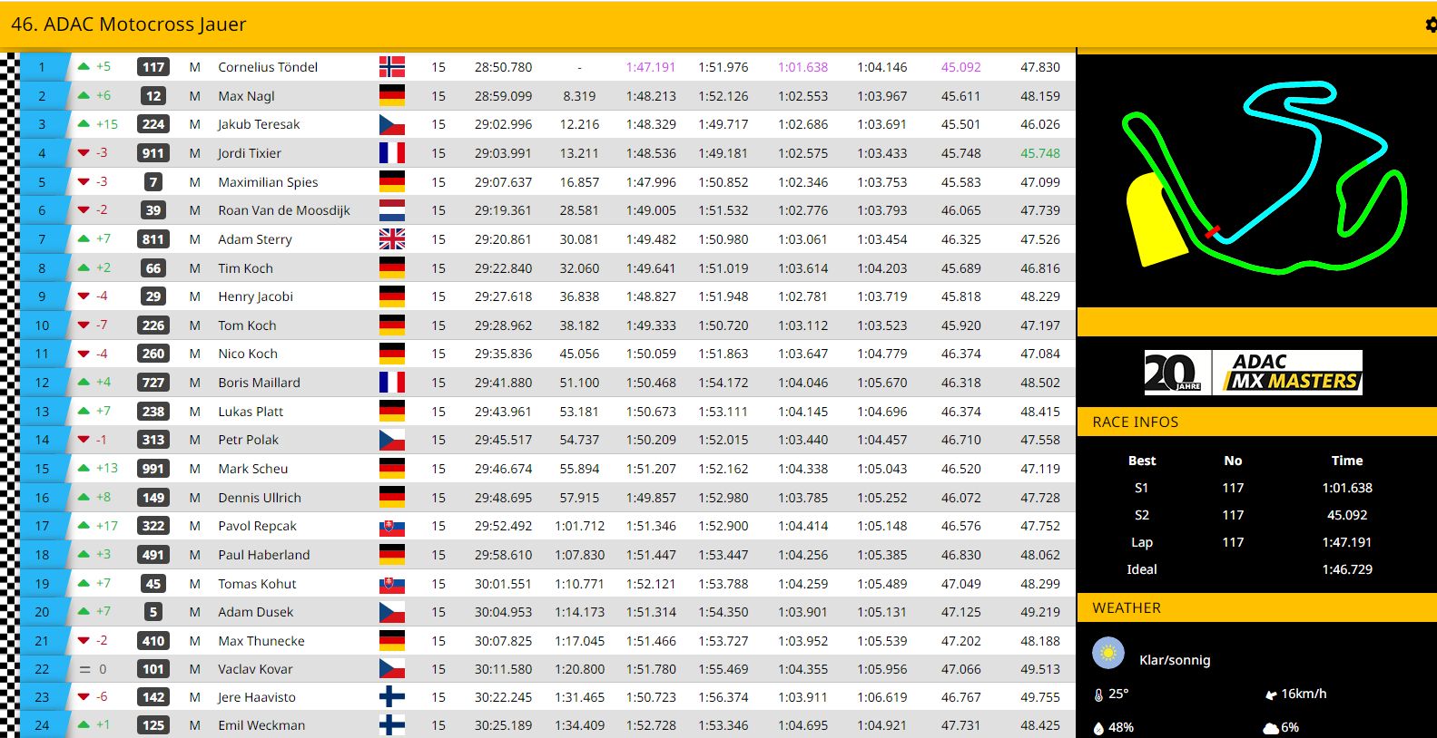 Max Nagl holte heute beim MC Jauer im zweiten Rennen Platz 2 und wird damit vorzeitig ADAC MX Masters Champion 2024! Cornelius Tøndel (NOR/Schmicker Racing) wird Sieger, Platz 3 geht an Jakub Terešák (CZ/Enduro Koch Racing).