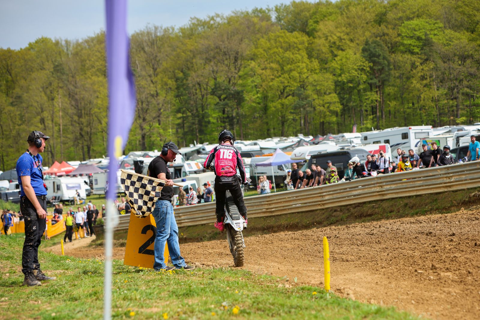 Ein besonderes Highlight war natürlich wieder die MSR-Masters-Klasse am Sonntag, bei der der Sieg am Ende unter den beiden Führenden der Deutschen Meisterschaft 250 ccm, Ben-Lukas Bremser und Linus Jung, ausgemacht wurde. Bremser hatte bei den anspruchsvollen Bedingungen am Ende die Nase vorn und sicherte sich bei seinem Heimrennen den Gesamtsieg. Damit wiederholte er seinen Erfolg vom Samstag, wo er bereits die MSR-MX2-Klasse by Weber-Werke.de gewinnen konnte. Der dritte Platz in einem randvollen Feld ging an Malik Schoch.