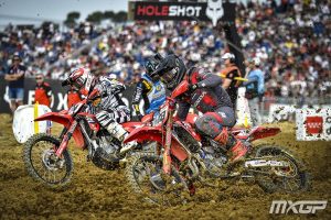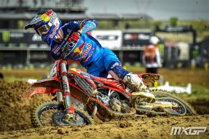 In der MX2 gab es ein sehr enges Duell zwischen dem Führenden in der WM Kay De Wolf/Husqvarna und dem momentan Zweiten Simon Längenfelder/GASGAS. So lautete auch der Zieleinlauf, gerade einmal 3,028 Sekunden trennten die beiden Streithähne. 10 Sek. hinter Simon kam Liam Everts/KTM als Dritter ins Ziel.