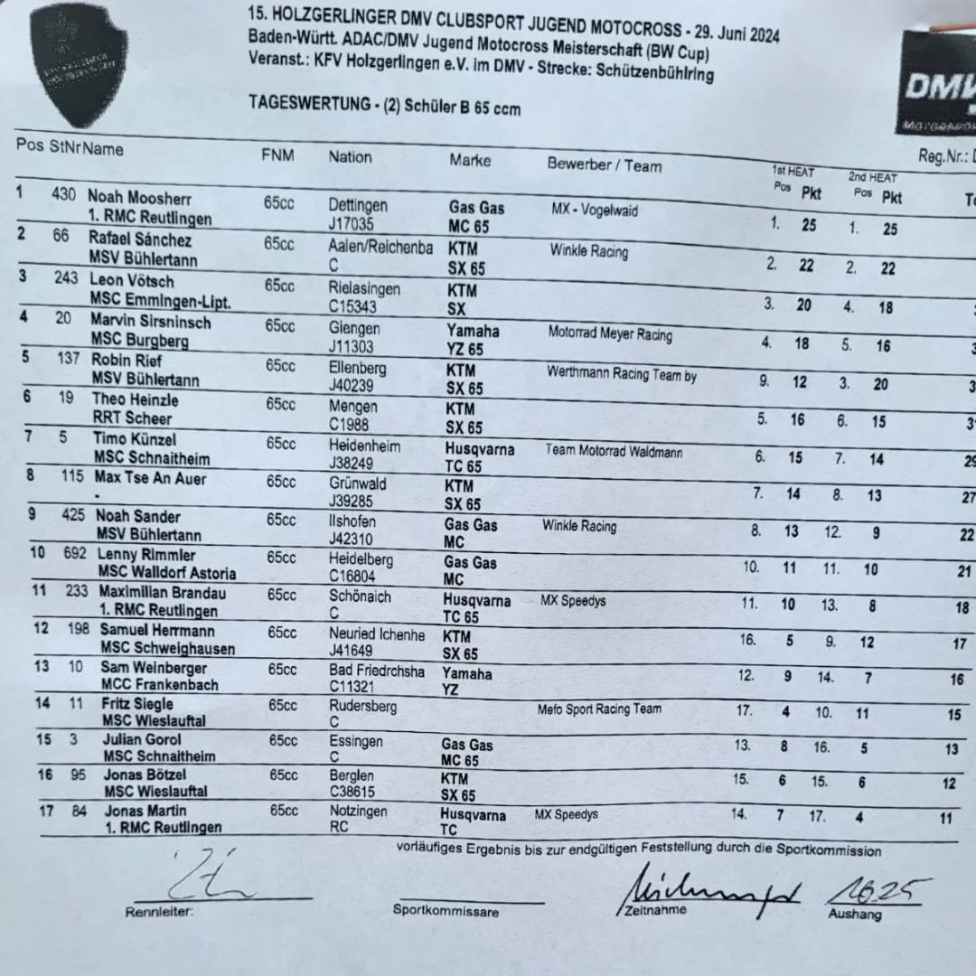 „Es war ein sehr heißer, erfolgreicher Tag beim @mxholzgerlingen auf einer sehr gut präparierten Strecke und bei perfekter Organisation, danke dafür!“ – Noah Moosherr