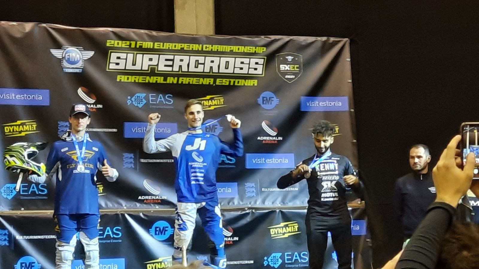 SX 250: Kaarel Tilk wird Supercross-Europameister 2021. Der estnische Fahrer konkurrierte mit dem Franzosen Axel Boldrini, der die drei Runden des Tages gewann. Eddy Bugé komplettiert das Meisterschaftspodium 2021 vor dem finnischen Fahrer Joni Makela.